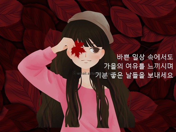 나뭇잎이 붉게 물들어가는 이 계절, 가을의 낭만이 곳곳에 묻어납니다. 그 아름다움을 느끼며 소중한 시간을 보내시길 바랍니다. 풍요로운 가을이 여러분의 마음에도 가득하길 기원합니다.