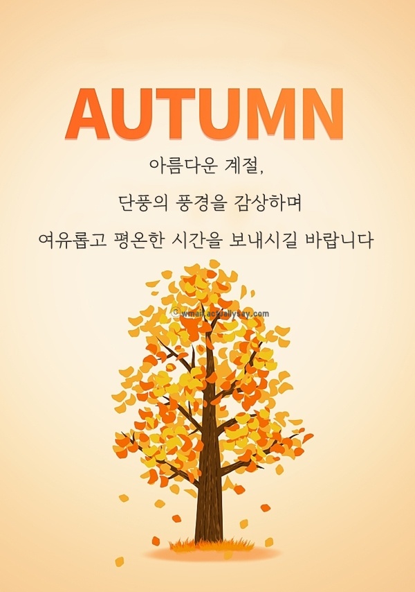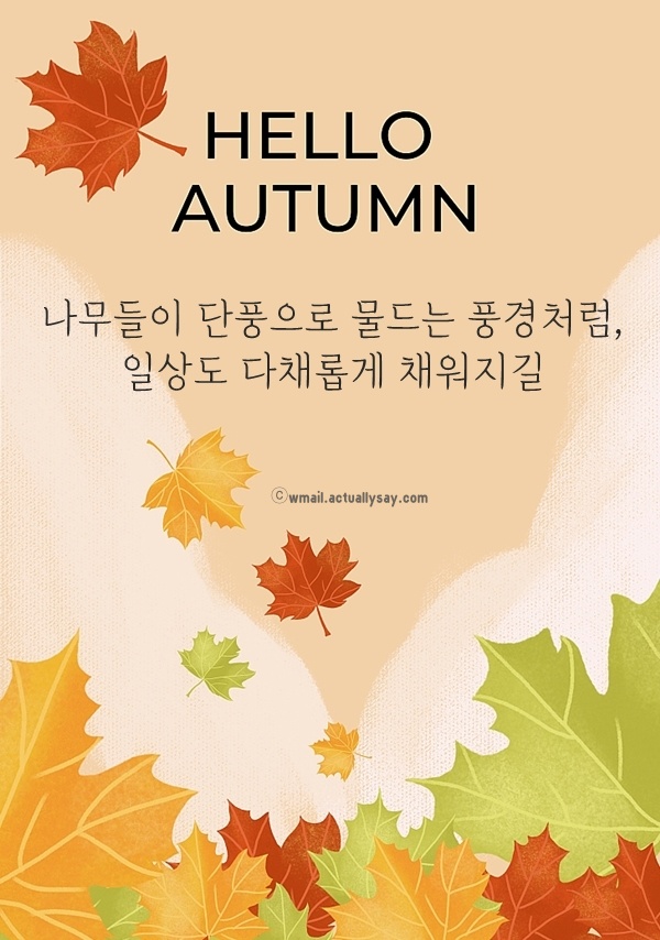 가을이 깊어갈수록 나무들이 고운 색으로 변해가고 있습니다. 단풍처럼 화사한 기운이 일상에도 가득하시길 바랍니다. 아름다운 가을을 만끽하시며 건강한 하루 보내세요.