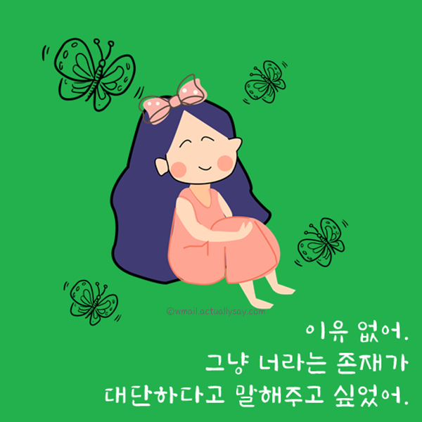 - 이유 없어. 그냥 너라는 존재가 대단하다고 말해주고 싶었어.