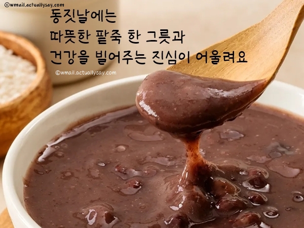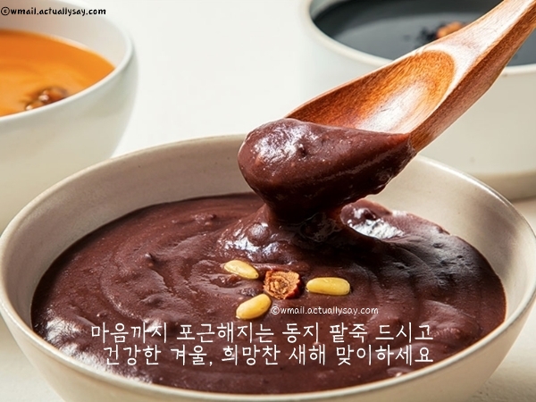 팥이 지닌 붉은 에너지처럼 오늘 하루도 기운차고 밝게 시작하시길 바랍니다. 겨울 공기가 점점 차가워지는 요즘, 건강 관리 잘하시고 다가올 새해도 무탈하게 보내시길 바랍니다.