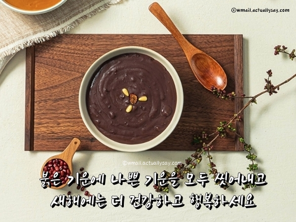 동짓날 팥죽은 나쁜 기운을 쫓고 건강과 행복을 기원하는 전통입니다. 붉은 팥의 따뜻함으로 추위를 이겨내며, 새로운 희망을 품는 하루 되시길 바랍니다. 건강하고 행복한 겨울 보내세요.